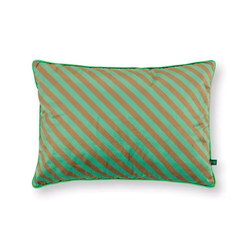 A almofada Block Stripe Verde brinca com diferentes tons de verde em um desenho de listras em blocos que equilibra ousadia e suavidade. As faixas criam ritmo e movimento, enquanto o veludo acrescenta um brilho discreto e uma maciez convidativa. O resultado é uma peça que combina frescor, modernidade e aquele toque acolhedor que transforma qualquer ambiente.