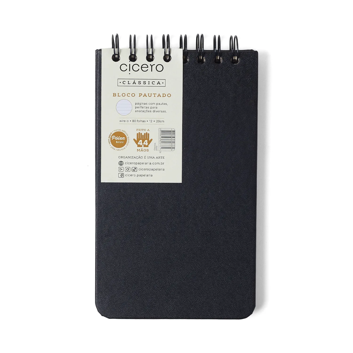 O Bloco Wire-o Clássica Pautado 12x20 Preta é charmoso e prático, perfeito para levar aonde quiser e para ter na sua mesa de trabalho como auxiliar. Vem nas novas cores da coleção Clássica e em estampas selecionadas 2025. As folhas são pautadas em Papel Pólen®, perfeitas para anotações diversas.