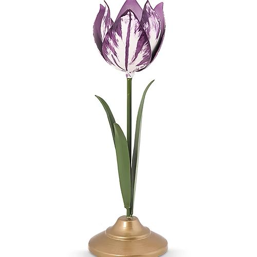 Castiçal em formato de tulipa, na tonalidade lilás, traz cor e delicadeza para a decoração. As peças, com suas curvas suaves e aparência poética, criam uma atmosfera acolhedora quando iluminadas, preenchendo o ambiente com um brilho suave e encantador.