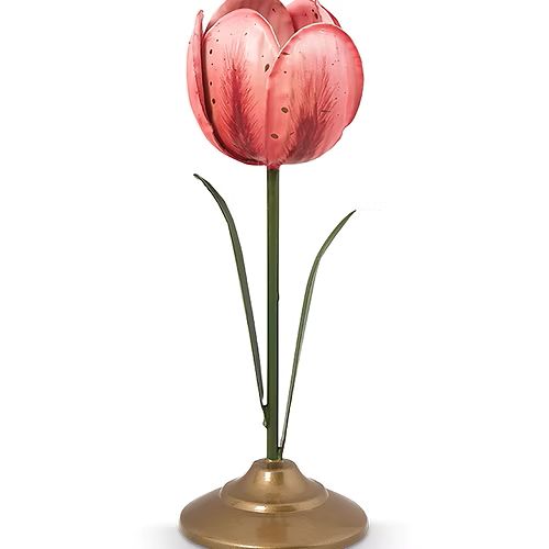 Castiçal em formato de tulipa, na tonalidade rosa, traz cor e delicadeza para a decoração. As peças, com suas curvas suaves e aparência poética, criam uma atmosfera acolhedora quando iluminadas, preenchendo o ambiente com um brilho suave e encantador.