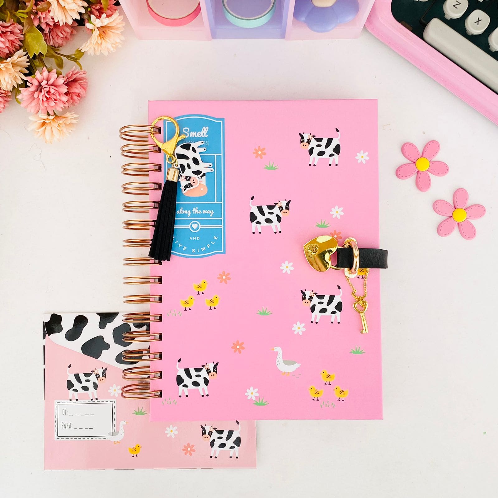 Diário Elegante com Cadeado Coração Dourado 100 Folhas – Smell the Flowers