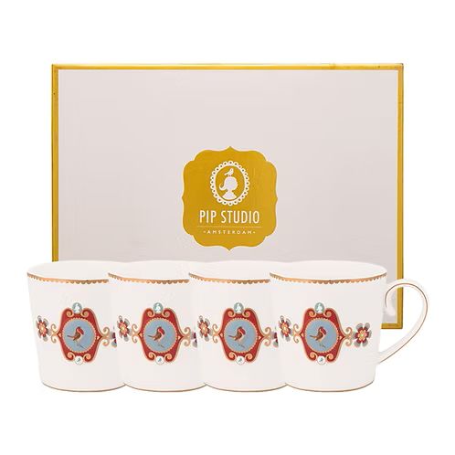 Tomando um farto café da manhã com amigos e família? Com este conjunto de canecas de 250ml com 4 peças, você garantirá que sua mesa está perfeitamente estilizada. As canecas são todas brancas com detalhes dourados na borda e com um passarinho pintado no meio de um belo medalhão em relevo. Estas canecas são perfeitas para misturar e combinar com os outros itens desta coleção. Dica: combine essas canecas com um conjunto de 4 pratos.