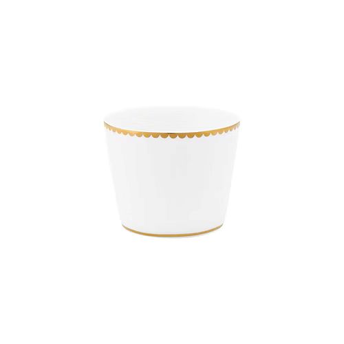 Uma xícara para ovo branca com um belo e delicado ninho decorando o seu interior. Detalhes dourados em suas bordas dão um toque final de elegância.